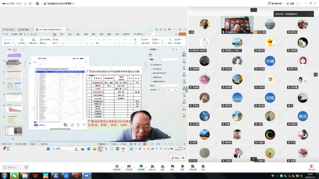 为进一步提升教师科研项目申报质量,推进2026年全国教育科学规划课题和教育部人文社会科学研究项目申报工作,3月12日下午,教育科学学院举办“全国教育科学规划、教育部人文社科项目申报辅导打磨会”。中国地质大学教育研究院二级教授、博士生导师李祖超应邀作专题辅导。学院副院长冯帮主持会议并致欢迎辞,学院约60名教师通过线上方式参加了本次活动。