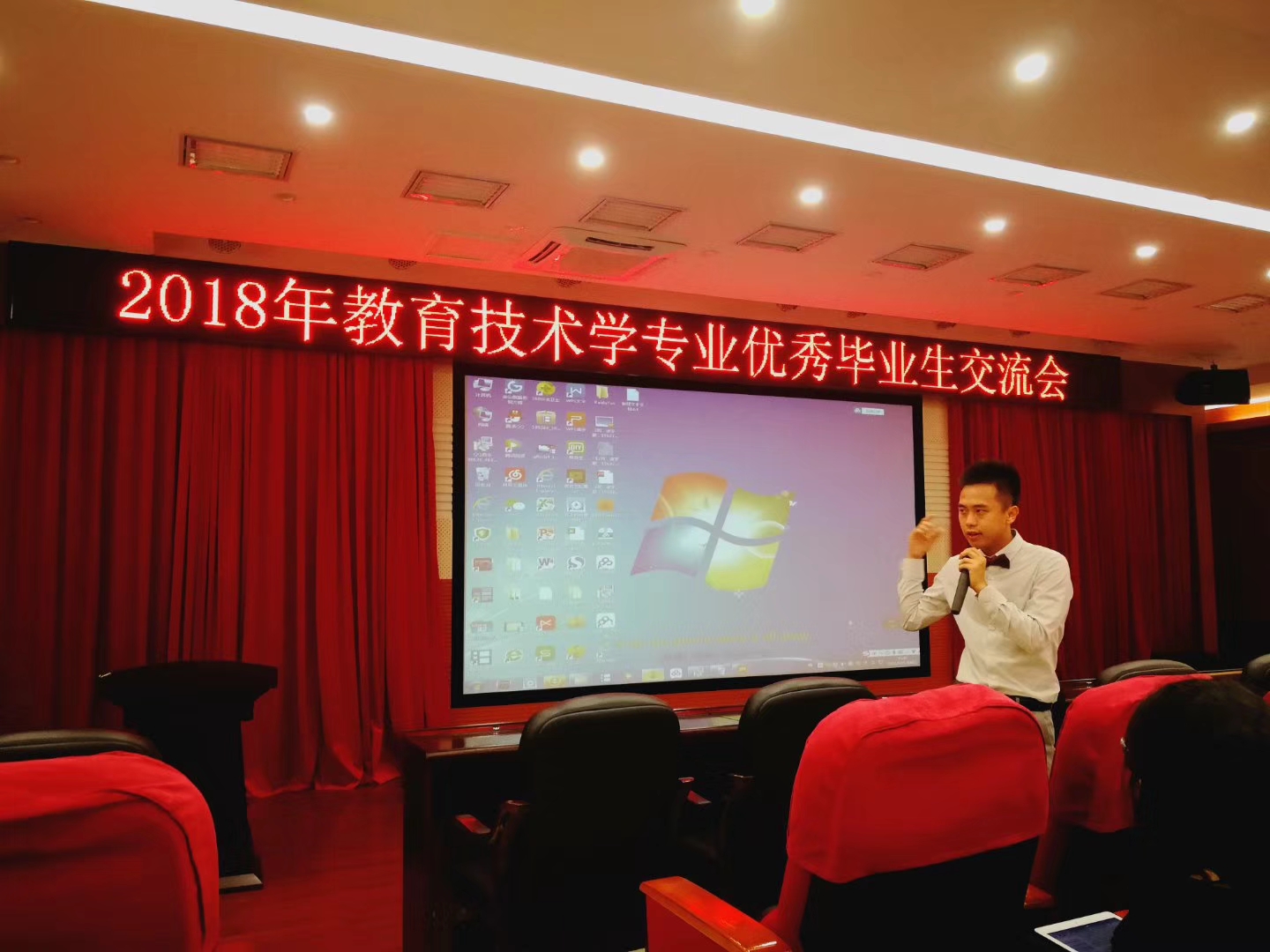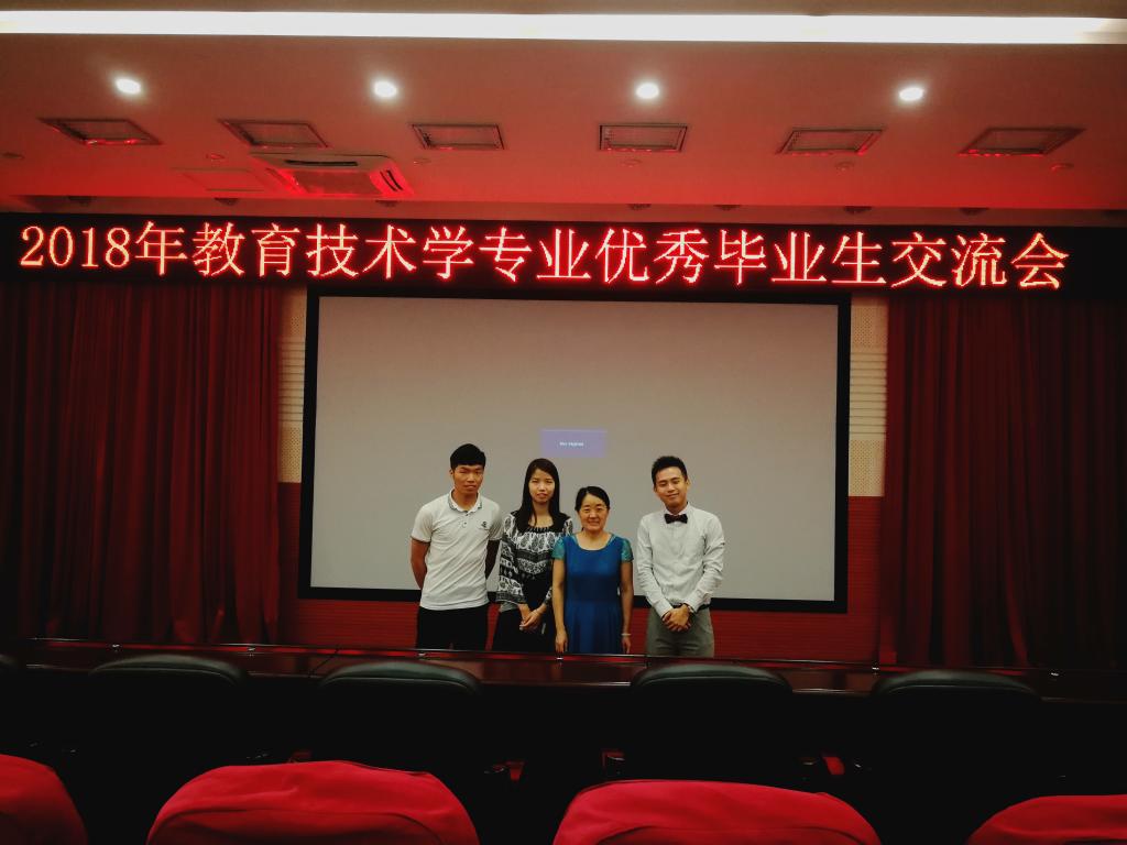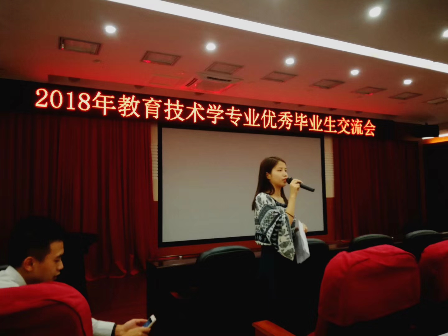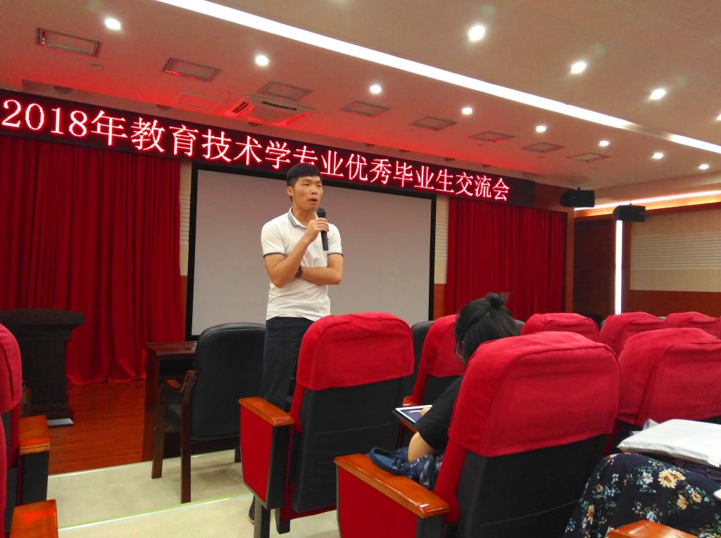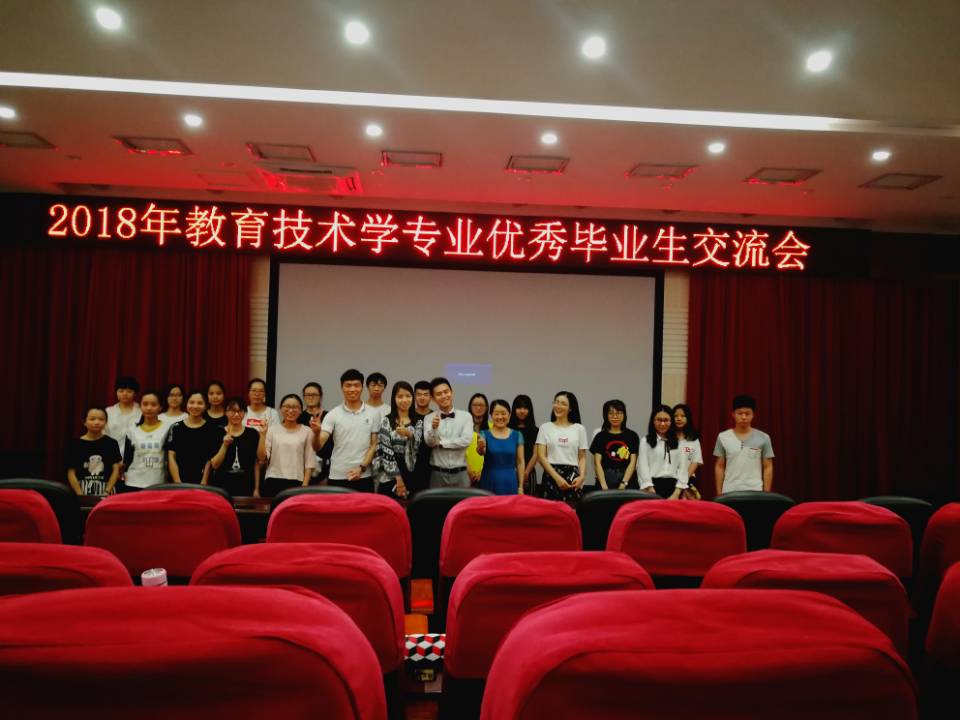 为加强教育技术学专业的学生对本专业的了解,帮助学生了解就业方向、提升就业意识,5月25日下午,我院在白云校区三教104报告厅举办了2018年教育技术学专业优秀毕业生交流会。分享会邀请了叶颖珊、廖远威、谢家豪三位毕业生分别对自己的经验进行分享。来自教育技术学专业的近百名学生现场认真聆听了分享会。此次分享会由系主任赵玉老师主持。