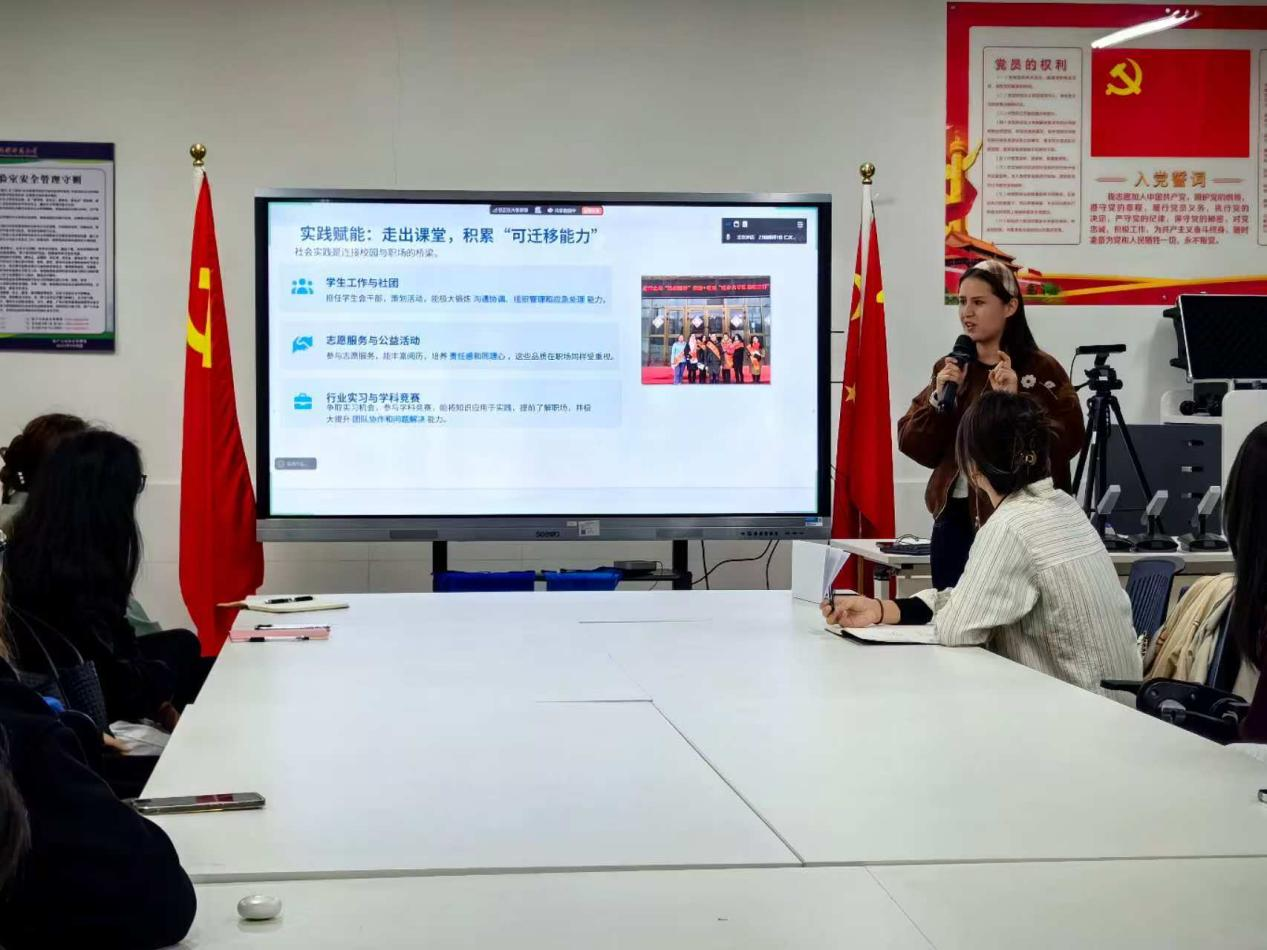 古再努·艾买同学以《我的考研心路历程》为题,结合自身在新东方、外企的工作实践经历,生动讲述了从职场回归校园的决策思考,深入解读“少数民族高层次骨干人才计划”政策核心要点,并围绕学习方法优化、求职竞争力提升、升学备考规划等关键问题,为同学们提供了兼具针对性与可操作性的实践建议。热则亚校友深情回望大学时光,感恩母校悉心培育,以三点真挚建议寄语学弟学妹:勇于尝试各类学习实践机会,在历练中锤炼综合素养;秉持高标准严要求对待学业,以精益求精的态度追求卓越;尽早启动职业规划,提前储备求职技能,牢牢把握发展主动权。两位嘉宾言辞恳切、分享务实,既有个人成长的鲜活感悟,又有干货满满的经验总结,为在场同学指明了前行方向,传递了奋进力量。