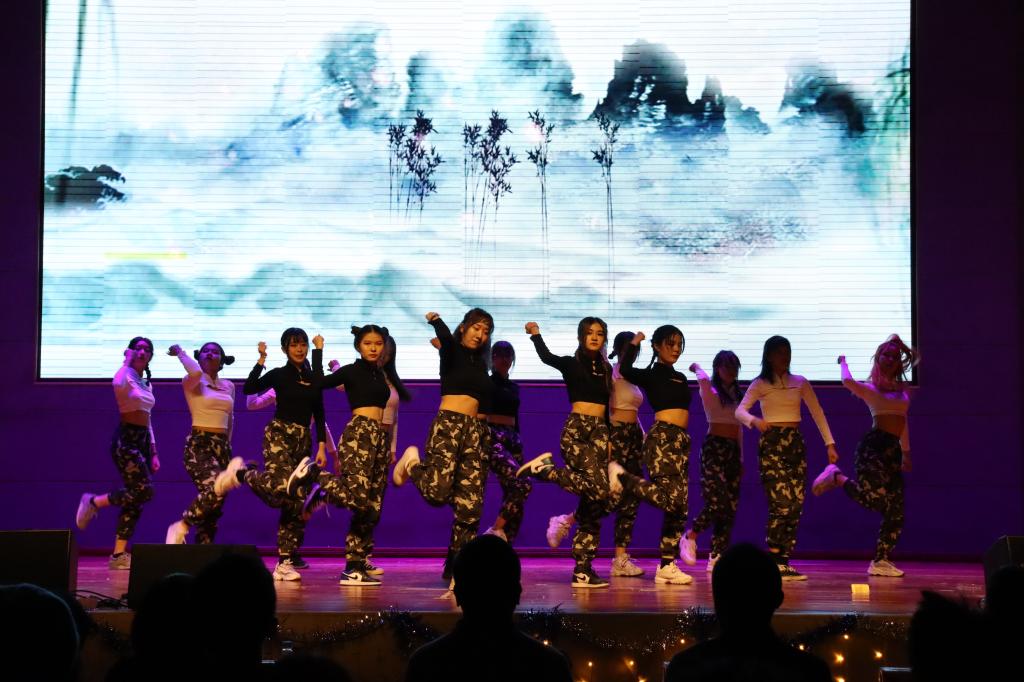 精彩的表演过后的互动环节,同学们积极参与,激情高涨,欢呼声此起彼伏。接下来的现代舞《别》,表演者轻灵娴熟的舞姿与音乐完美融合,创设出多个场景,无不感染在场所有观众,牵动着每一位观众的心。紧随其后的话剧《红帽公主和小白雪》奇思妙想的故事情节引得现场观众笑声不断;《We R Dream Chasers》音乐和舞蹈的融合让人沉浸其中。而今晚给同学们最大惊喜的无疑是助班们的特别节目。屏幕上的19级新生的助班们用他们真诚的话语向新生表达了他们的深厚情感与对新生们未来的祝愿“零星地变得优秀,也会变成银河”。