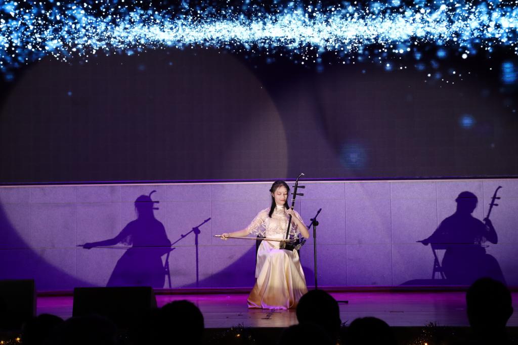 一段精彩的短片点燃了现场观众的激情,由教科乐队带来歌曲《你不是真正的快乐》在热烈的掌声中拉开了本场晚会的帷幕。紧接着法知舞队带来街舞《Dancing Blow》,激情洋溢的舞蹈将晚会推向了第一个高潮。接下来的话剧《最美军人》生动地展现了共产党员的坚强意志和不屈精神,让同学们热血澎湃;《赛马》高亢激昂的二胡声让人为传统乐器的魅力所折服;歌舞《飘向惊鸿之北》古典与现代相结合,让人置身于视听盛宴中。