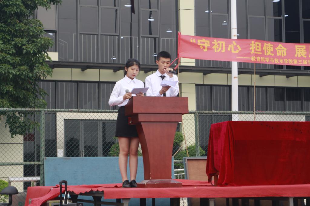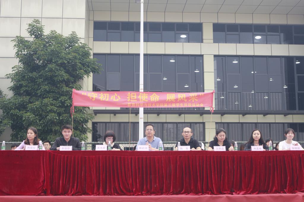 为贯彻德、智、体全面发展的教育方针,落实习近平总书记在十九大提出的“全民健身”计划,教育科学与技术学院于10月26日早上7点45分在白云校区田径运动场隆重举行以“守初心、担使命、展风采”为主题的教育科学与技术学院第三届学生田径运动会。参加这次运动会的有院党委书记林启词、院党委副书记吴水爱以及各位老师与二级学院嘉宾。