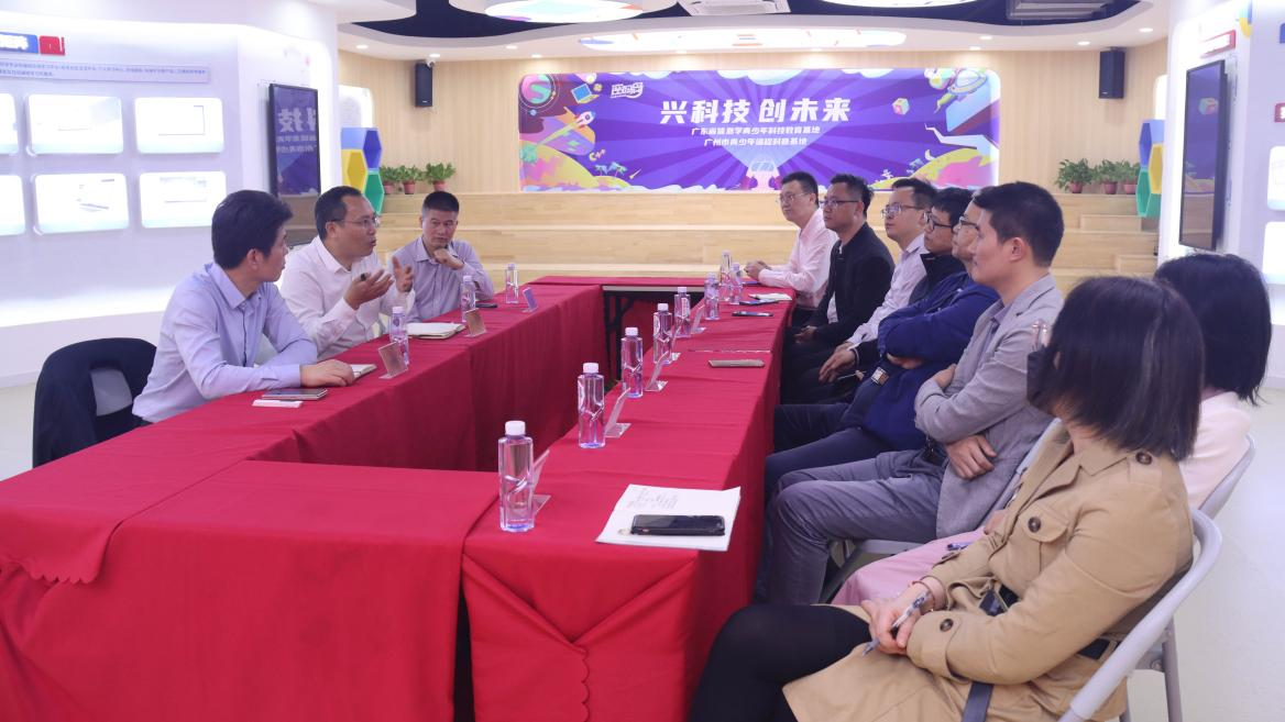 随后,双方举行了座谈会。会上,我院一行认真听取双减政策实施后广州密码营地信息科技有限公司的发展思路、建设历程、基地建设特色、荣誉资质等情况,了解到广州密码营地信息科技有限公司在中小学C++编程、Python编程、图形化课程培训以及配套课程资源开发、青少年编程领域重要赛事(蓝桥杯、CSP_J/S)、科普基地建设累累硕果。最后,张旭日书记和熊华军院长就接下来校企双方在中小学编程教学考证培训、中高职编程培训课程开发贯通、中小信息技术创客教育资源开发、科普师资培养、科普基地合作、校企实习岗位建设等方面进行了深入的交流。