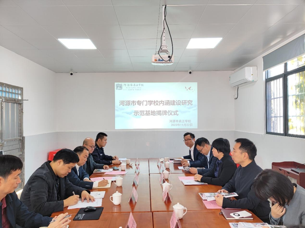 为深入贯彻习近平总书记关于教育重要论述,提升河源市专门教育、专门矫治教育水平,推进专门教育学校建设和发展,11月22日教育科学学院副院长冯帮、河源校区管委会副主任张宇鹏、副主任李冲、教育科学学院辅导员黄立一行,赴河源市启正学校举行专门学校内涵建设研究示范基地揭牌仪式。河源市教育局副局长黄汝荐、源城区工商联党组书记李晨蕾及相关领导出席并见证仪式,启正学校校长谢永刚主持会议。