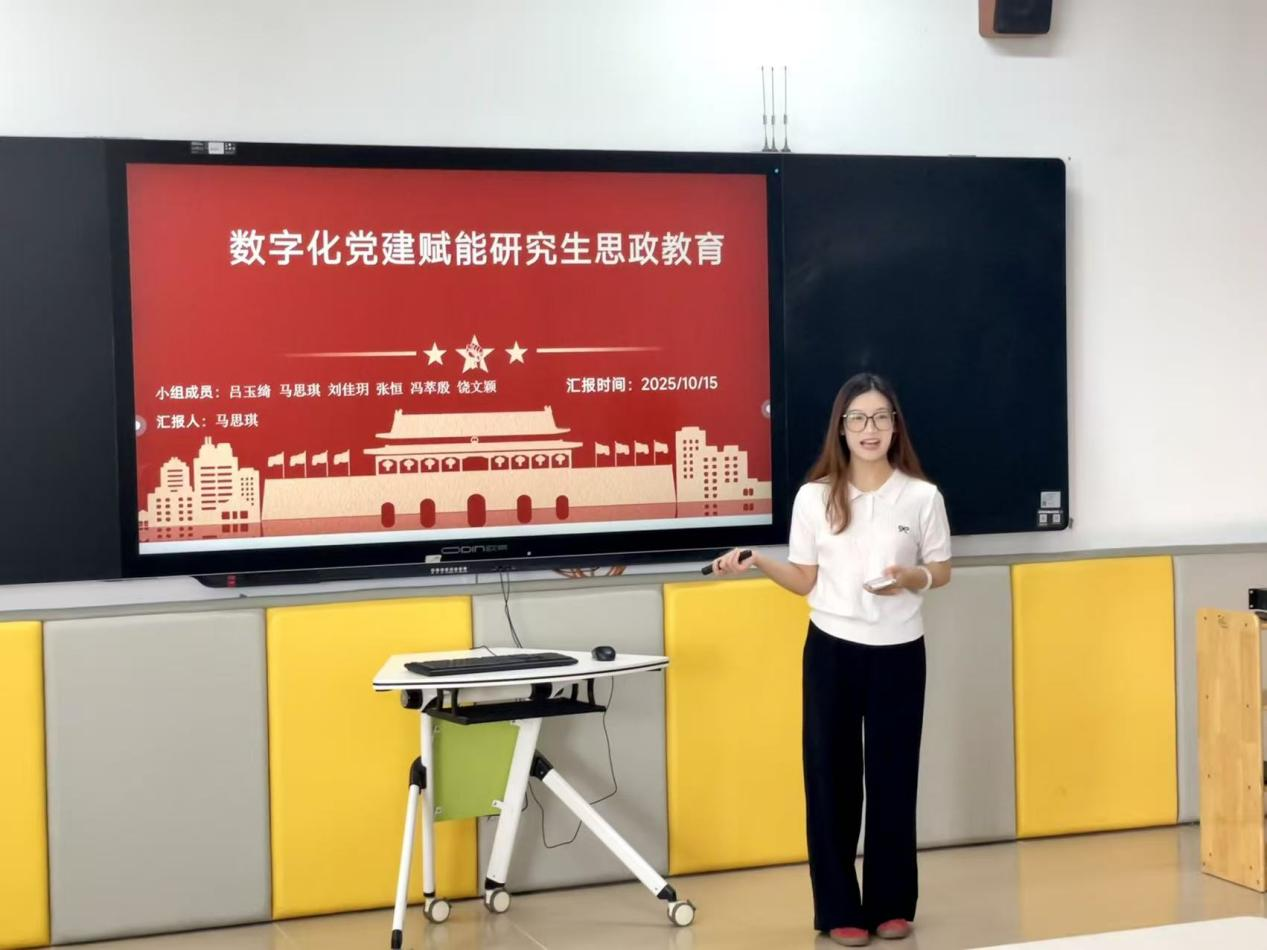 10月15日,“数字化党建赋能研究生思政教育”课题组在学前教育研究生党支部带领下召开专题研讨会,围绕数字化时代背景下党建与思政教育深度融合的理论创新与实践路径展开深入研讨。本次活动由课题组成员马思琪同学主持。