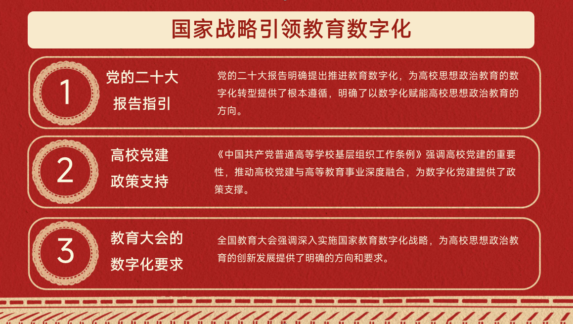 会议开始,课题组系统梳理了数字化党建的政策背景与发展需求。与学前教育研究生党员同志共同深入学习党的二十大报告中关于“推进教育数字化”的重要论述,认真研读《中国共产党普通高等学校基层组织工作条例》(以下简称《条例》)中关于加强高校党建工作的重要指示,并全面领会了全国教育大会关于实施国家教育数字化战略的部署要求。通过阐述内容,课题组一致认为:党的二十大报告为高校思想政治教育的数字化转型提供了根本遵循和行动指南,《条例》为数字化党建工作提供了坚实的制度保障和政策支撑,全国教育大会则进一步明确了新时代教育数字化发展的战略方向。在当前信息化、智能化快速发展的时代背景下,推进数字化党建与思政教育的深度融合,不仅是贯彻落实党中央决策部署的必然要求,更是适应新时代研究生教育发展规律、提升育人实效的重要举措。