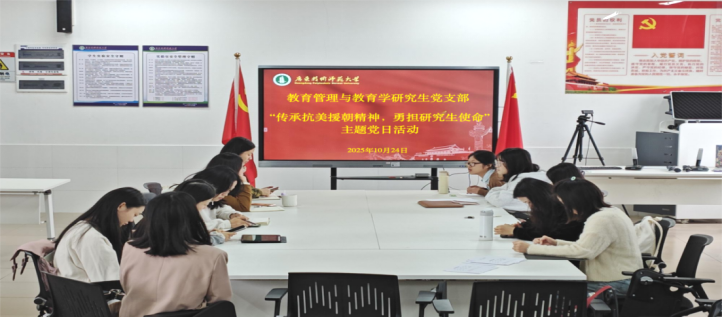 为了深刻感悟革命精神的力量,支部以“传承抗美援朝精神,勇担研究生使命”为主线展开,组织开展本次主题党日活动。叶水娟同志首先带领大家重温抗美援朝的历史背景与时代价值,引导党员体悟其中蕴含的爱国主义、革命英雄主义、革命乐观主义与国际主义精神。随后,支部以“电子明信片”为载体,与英雄先烈展开跨越时空的对话:同志们写下寄语,向志愿军致敬,并表达把伟大精神融入学习科研、积极投身教育强国实践的坚定信念。
