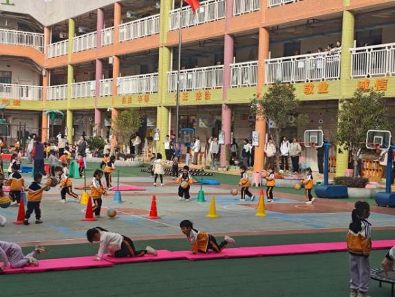 随后,同学们有序进入户外活动区,全程观摩了该园特色活动“体能大循环”。大家细致观察幼儿在攀爬、平衡、跳跃等多种组合器械中的动作发展与参与状态,认真记录教师如何根据幼儿年龄特点设计活动环节、组织流程并实施安全管理。现场幼儿展现出的活力与教师专业的引导策略,引发了同学们的深入思考和热烈讨论。在园所参观环节,同学们分为三个小组,依次走访了教学活动区、户外游戏场、生活照料区等关键场所。大家不仅关注空间布局与环境创设的教育意图,更结合所学,就区域材料投放、保教细节配合、幼儿行为观察要点等议题,与余主任及在场骨干教师进行了多轮互动交流。余主任结合自身丰富的实践经验,对同学们提出的“如何平衡小班幼儿情感安抚与规则建立”“主题课程如何适应不同发展水平幼儿”等问题给予了细致解答,并分享了诸多行之有效的教育策略,现场研讨氛围浓厚,学术与实践对话深入。