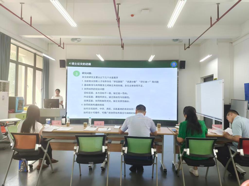 9日30日,教育科学学院2023级教育学专业教育学原理方向研究生中期考核会在白云校区第二实训楼311室如期举行。学院高度重视本次中期考核,并成立了中期考核领导小组,考核组成员由华南师范大学教科院吴宏超教授、广州市海珠区第四实验小学吴珈琦副校长、广东技术师范大学教科院冯帮教授、冯嘉慧副教授、李元明副教授组成。