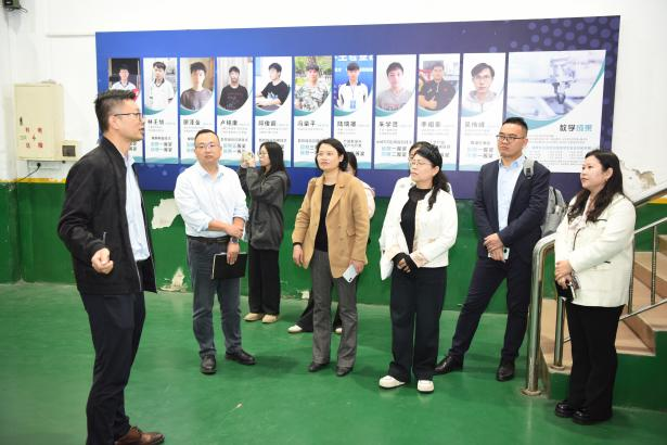 上午,调研团抵达南海信息技术学校。在学校领导的陪同下,先后参观了该校的数控铣/加工中心实训中心、心理中心、AIOT智慧物联网实训中心、南信-汇博机器人产业学院等教学场地,学校在实践教学、德育、校企合作、竞赛等方面形成特色鲜明、成效显著的人才培养模式给调研团留下深刻印象。