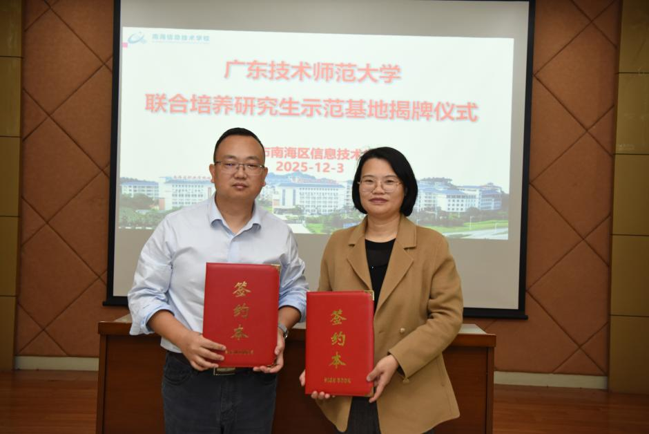 在座谈会上,高海涛副校长介绍了南海信息技术学校的办学历史、专业设置、办学特色、办学成效等情况。刘海兰副院长从师资队伍建设、学科专业设置、人才培养、科学研究、社会服务等方面,结合学院“申博”中心工作,介绍了学院近年来办学取得的显著成绩及经验做法。与会人员围绕心理健康教育、德育工作、产业学院建设等议题,进行了深入交流和研讨。随后,刘海兰副院长和高海涛副校长在参会人员的共同见证下签署专业学位研究生联合培养基地协议书,并举行了联合培养基地揭牌仪式。在仪式上,南海信息技术学校聘请陈伟院长、刘海兰副院长为“十五五”规划专家顾问。