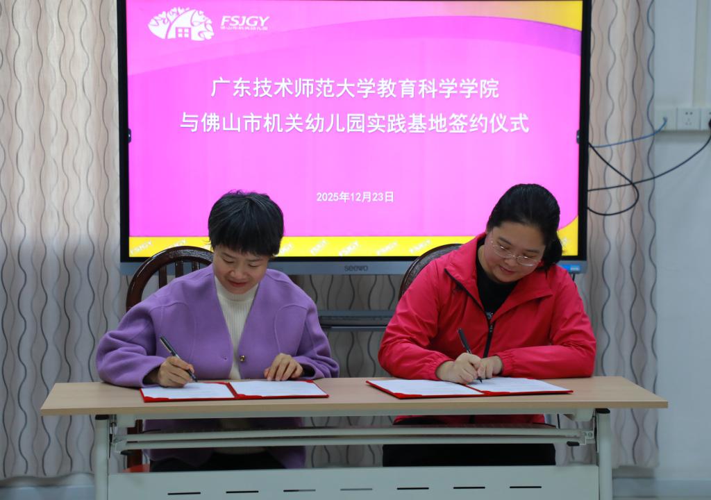同时,为深化高校与一线单位的协同育人机制,构建理论与实践深度融合的学前教育人才培养新模式,广东技术师范大学教育科学学院与佛山机关幼儿园共建教育硕士(学前教育)联合培养实践基地签约仪式在佛山机关幼儿园正式举行。