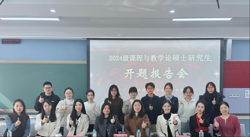 为切实提升硕士研究生培养质量,严格把控学位论文开题环节,根据学校研究生院相关工作安排及《广东技术师范大学研究生学位论文开题和中期考核实施办法》等文件精神,教育科学学院于2025年12月29日上午,在白云校区教学科研楼208教室组织开展了2025年下半年课程与教学论专业硕士研究生学位论文开题报告会。陈丽君教授、史丽晶教授、张晓洁副教授、冯嘉慧副教授、骆明丹副教授、苟晓玲博士、闫安博士、钟佳容博士8位老师参加了开题报告会。